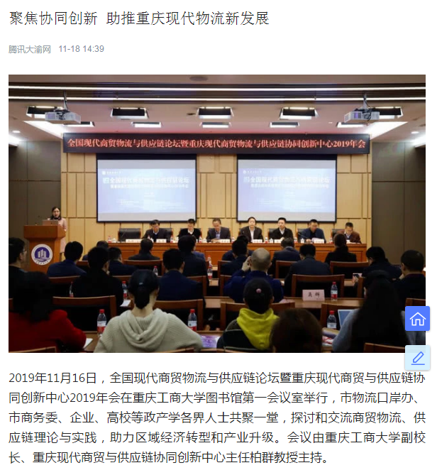 此次会议邀请政产学各界人士共聚一堂,探讨与交流商贸物流、供应链理论与实践,助力区域经济转型和产业升级,为重庆现代商贸物流与供应链协同发展探索了新方向,也为重庆现代商贸物流与供应链协同创新中心的发展目标、工作任务、实施路径等提出了宝贵建议。